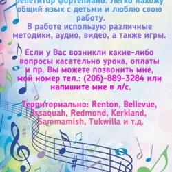 Репетитор фортепиано и вокала. Легко нахожу общий язык с детьми и люблю свою работу.