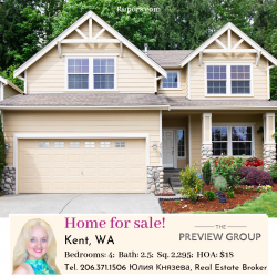 Продается дом в Рентоне. 4 спальни 2.5 ванные. The Preview Group.