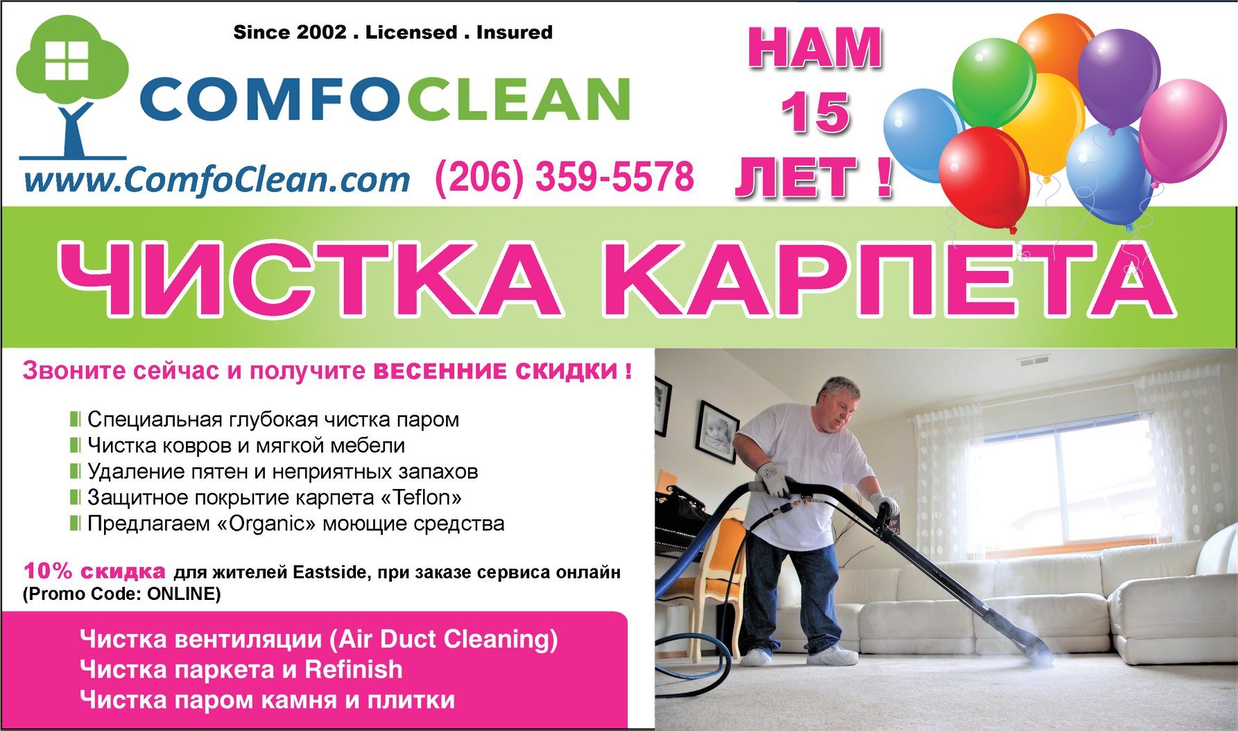 OUR REGULAR CUSTOMERS - OUR BEST FRIENDS ! Please, Order our Professional Cleaning Service online www.ComfoClean.com and save 10% ! With Promo Code: ONLINE