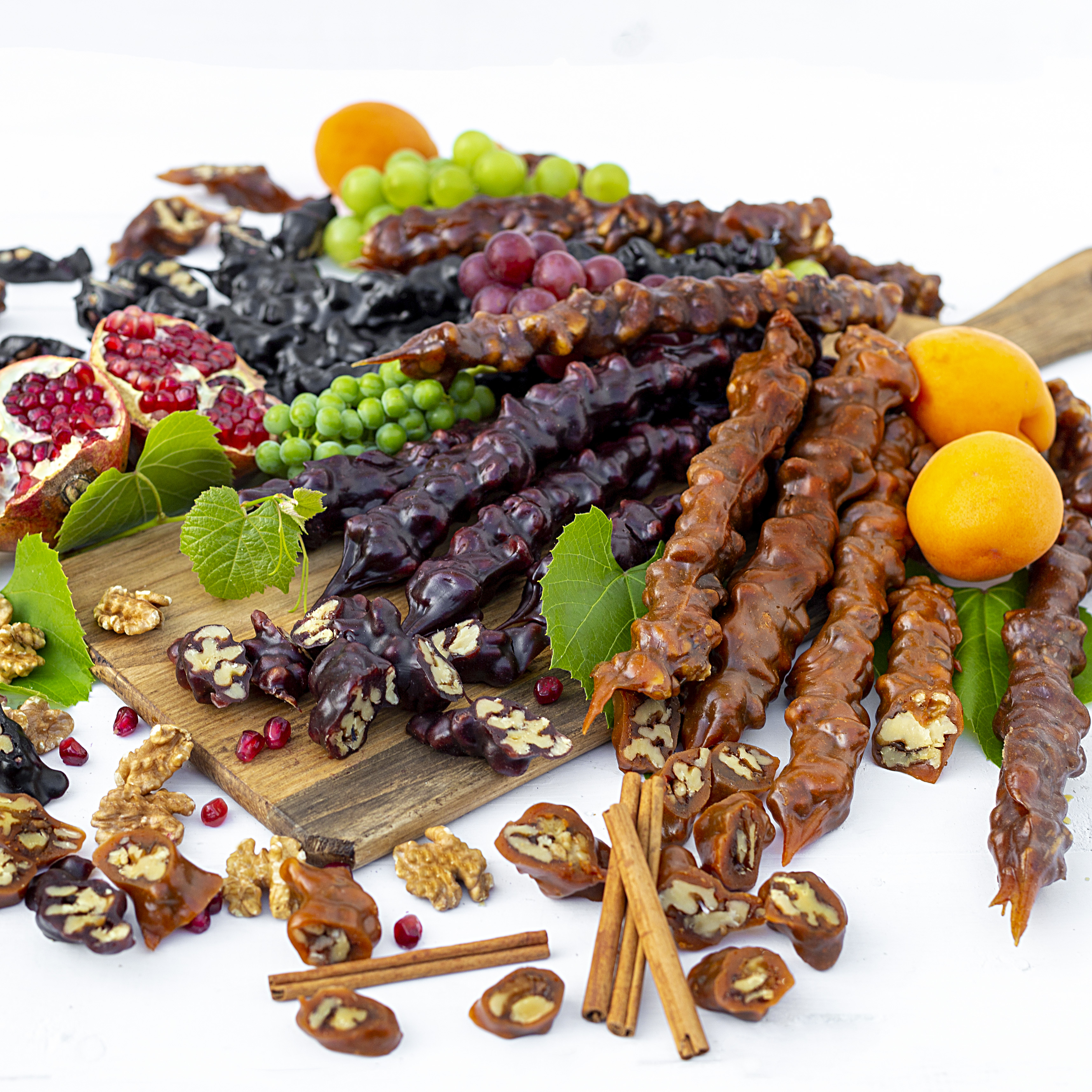 Аутентичная чурчхела доступна для доставки в США! Вспомните вкус детства впервые в Америке, как в Грузии. Мы предлагаем 4 вкуса: виноградный, гранатовый, абрикосовый и яблочно-коричный. Быстрая и дешевая доставк